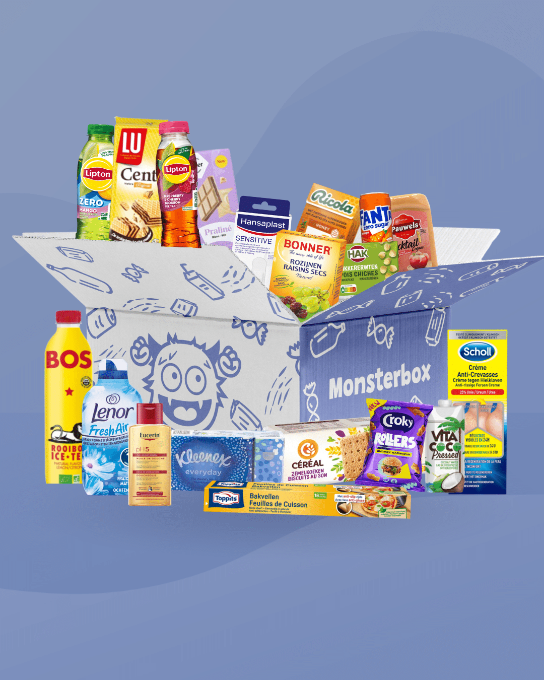 Let op: Deze Monsterbox is alleen verkrijgbaar in België. Er kunnen producten in de Monsterbox aanwezig zijn met een beperkte houdbaarheidsdatum. De samenstelling per individuele box kan verschillen.